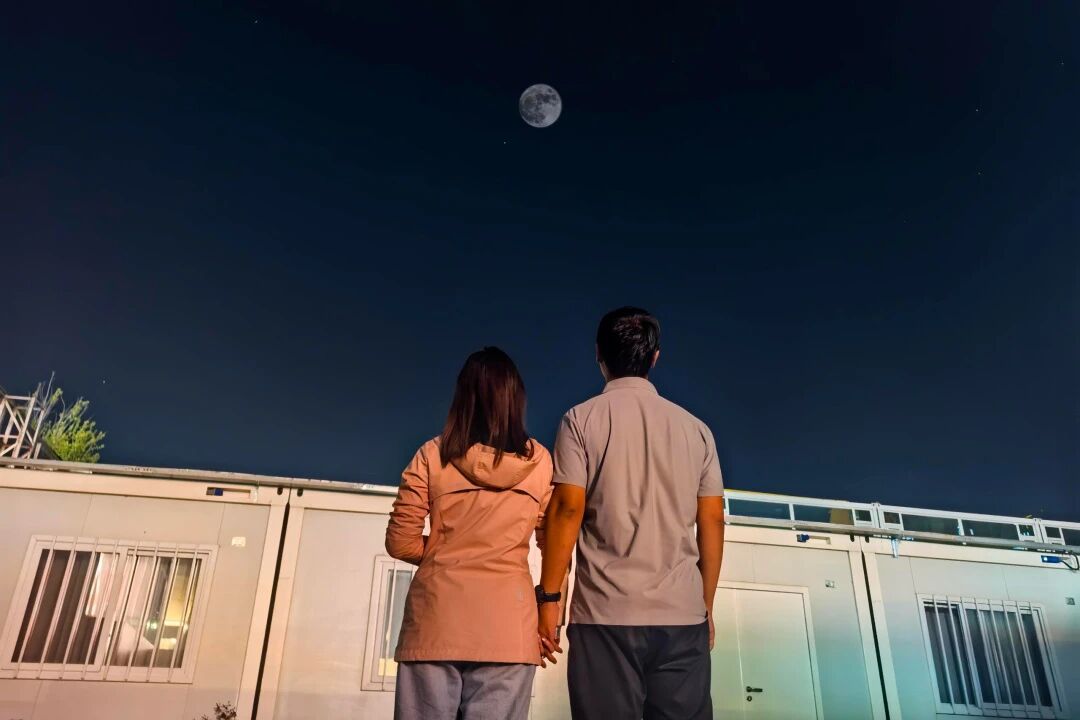 人群散去,项目部的小院里,情定“北方”的恋人正牵着手,共享这月圆时刻。他们不仅是彼此的爱人,更是并肩的战友。静谧的月光下,投映着他们相偎的身影,时光流转,从相识到相知,每一段回忆仿佛都融入了今夜的皎洁月光,岁月静好,吾心安宁。